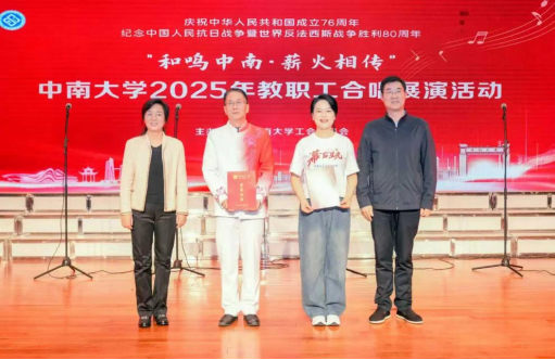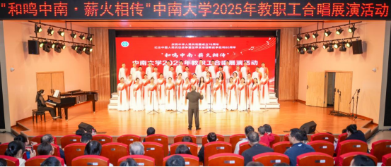潇湘校区毓秀楼和声堂内掌声雷动,“和鸣中南・薪火相传”2025年教职工合唱展演在此圆满落幕。在此次展演活动中,91巨乳